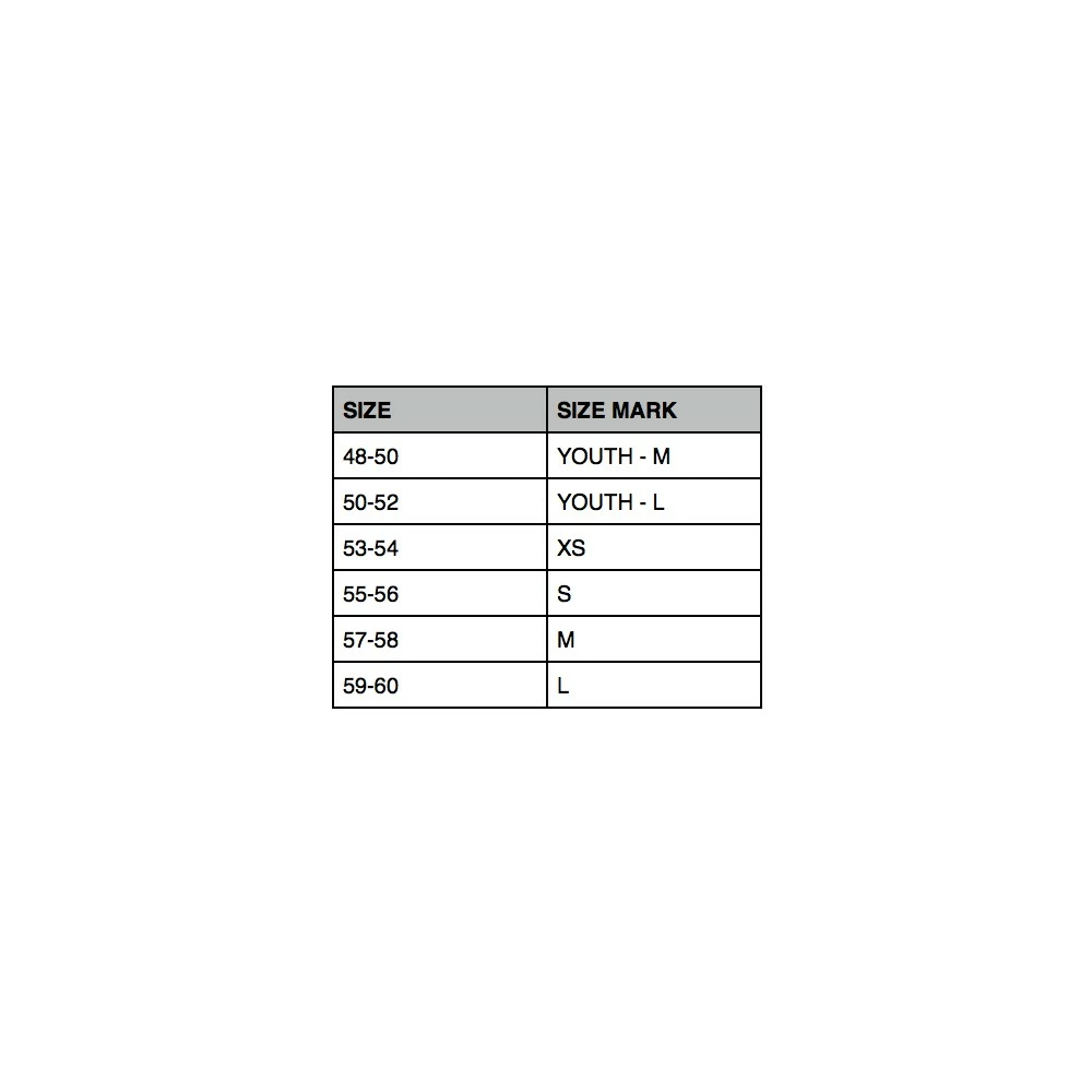 | Option | Choisir une option, T.YM (48-50cm), T.YL (50-52cm), T.XS (53-54cm), T.S (55-56cm), T.M (57-58cm), T.L (59-60cm) |