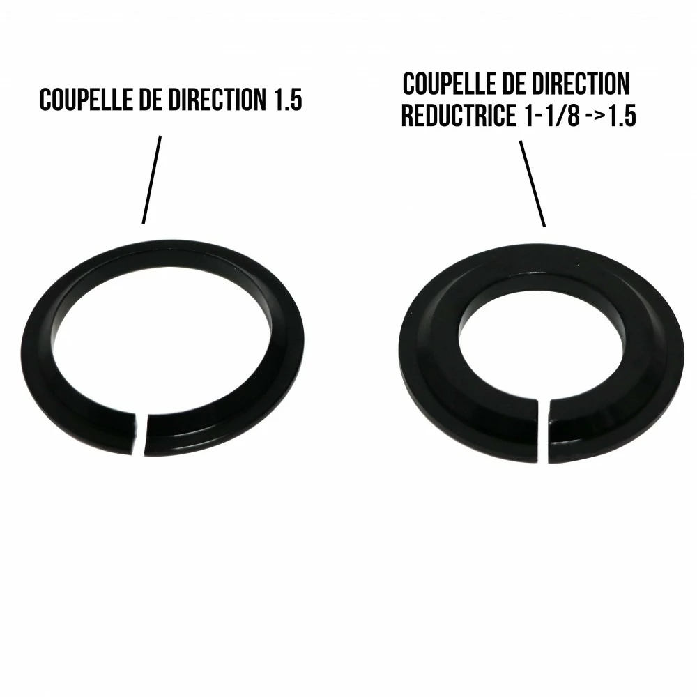 - Diamètre pivot : Livré avec deux coupelles de fourche, l’une pour du 1.5 au l’autre réductrice en 1-1/8.