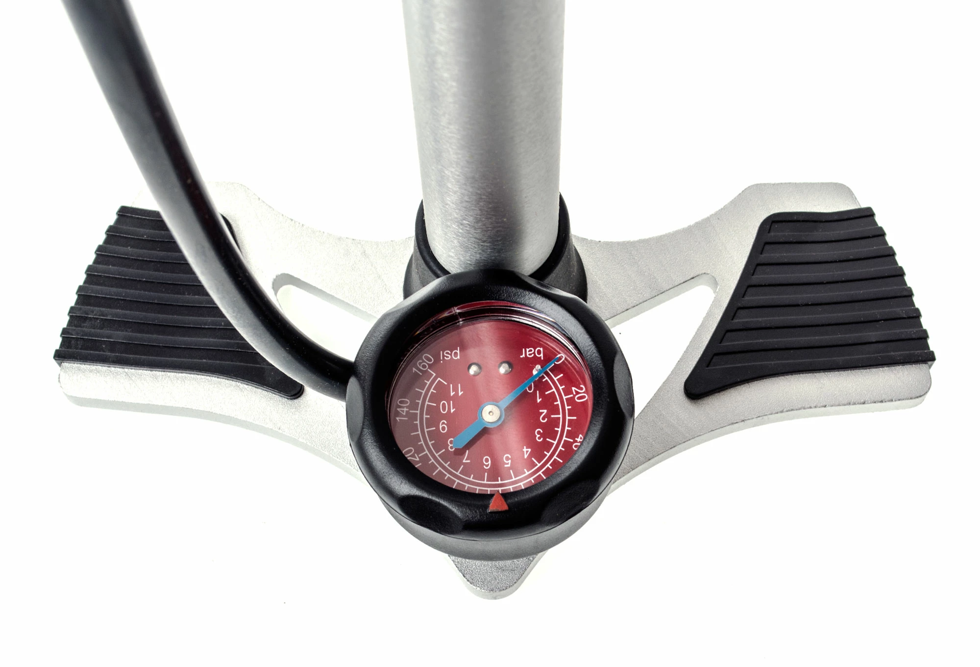 - Le manomètre de précision affiche les valeurs en bar et psi.
